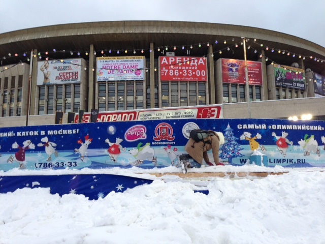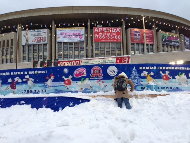 今回は、 「もしかして、ここ、アイススケートじょうかも!」といいだし、 雪の中を埋れながら登り、 「アイススケート場だよ!」と言ったあと、 変なところから登ったせいで出れず。 無理やり出ようとしたら、 係員さんにわからないロシア語で、 めっちゃ怒られてました。 とほほ。