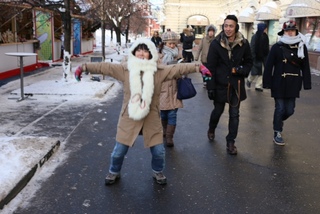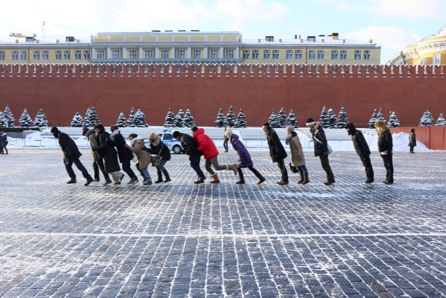 今回の旅は、ほぼ日以外にも、いろんな方とごいっしょさせてもらっているので、みんなでクリミナル。イン 赤の広場。でも、タイミングを間違うと、二枚目のようになります。われわれは、こんなところで、なにをやっているのでしょう。あぁ、モスクワ。