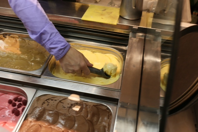 あった、あった、アイスクリーム屋さん。グム百貨店のカフェエリア付近で半分くらいの人がアイスを食べているくらいの人気ぶり。バニラアイスをお願いしました。わくわく。