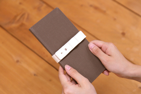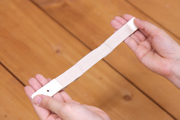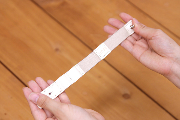まず、このブックバンドについているギボシ(金属の突起)ボタンを外します。