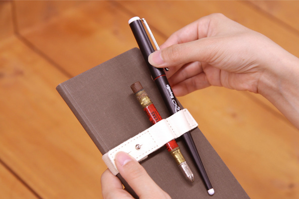 そして、ブックバンドについている2つのペンホルダーにペンを差してみましょう。