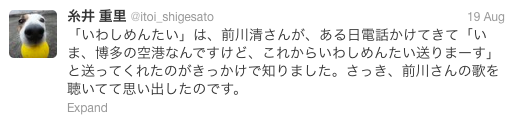 さっき、前川さんの歌を聴いてて思い出したのです。】