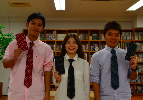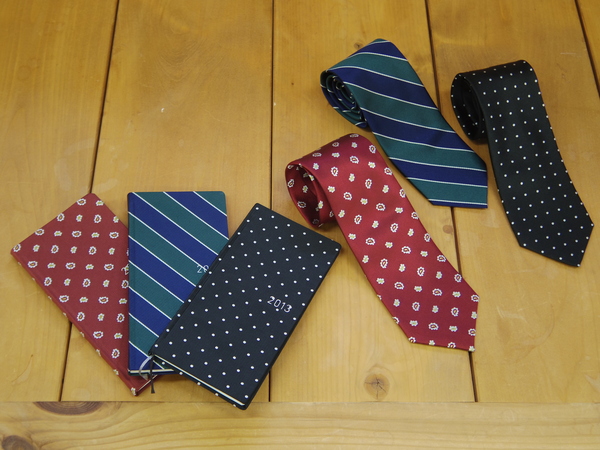 同じ生地をつかったオリジナルネクタイ(右の3つ)です。