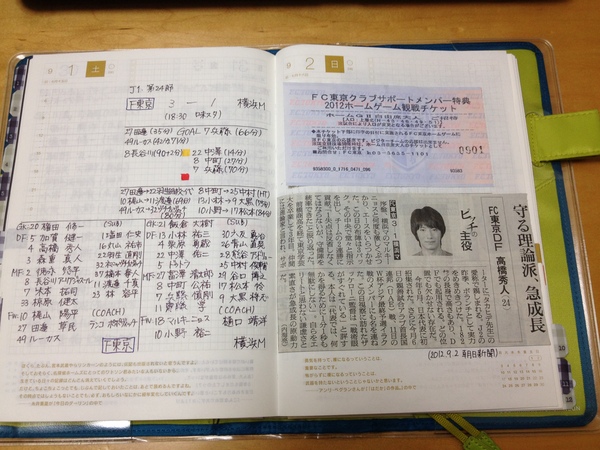昨年、ほぼ日手帳に「Jリーグ記録」をつけているという