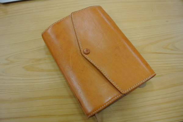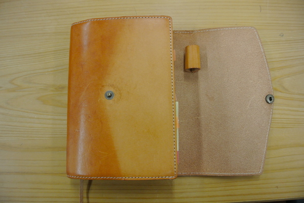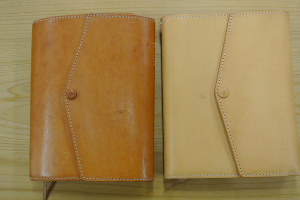 見せていただいたヌメ革のカバーが、