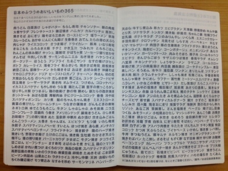 こちらは365品のメニュー名が、ずらっと並んでいるページ。