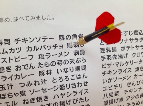 ダーツをつかって、今日のお昼ごはんを決めてみますよ!