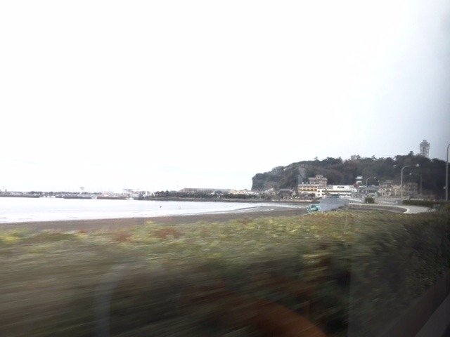 外を見てたら江ノ島がぐんぐん近づきます。