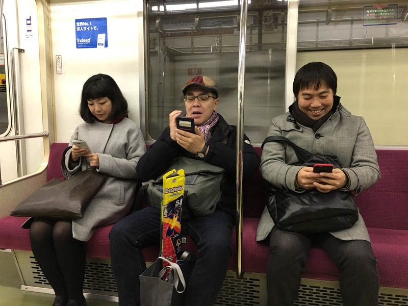 たまたまいく方向が一緒になった、山下、小竹、多田と電車に乗ってます。