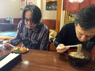 いもだんごvs山菜とろろそば。