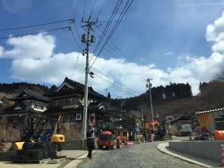 つなかんの前の道は舗装中。