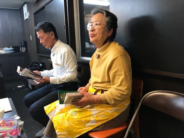 事業者さんの話を真剣に聞くばっぱ。