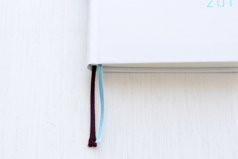 しおりは表紙のデザインにあわせた水色と臙脂色組み合わせ