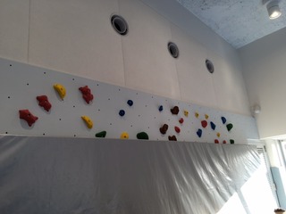 木のおもちゃあり、ボルダリングあり、