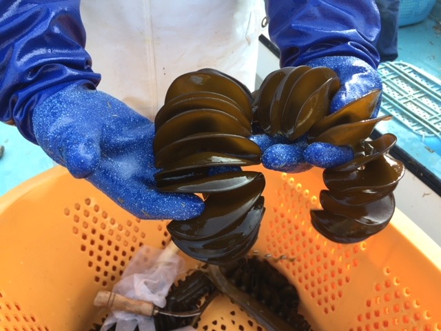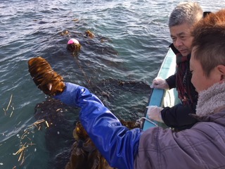 沖でメカブの収穫。