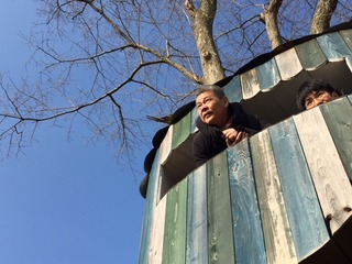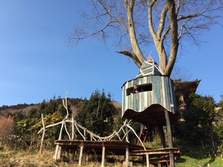 つなかんの裏にあるツリーハウスへ。