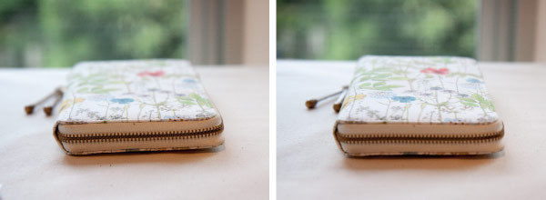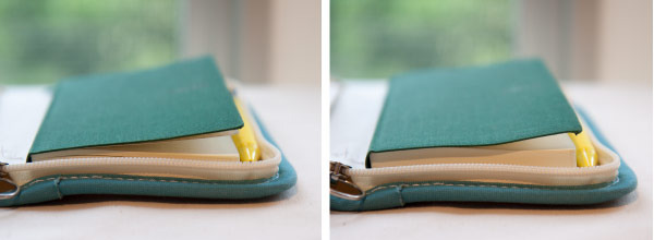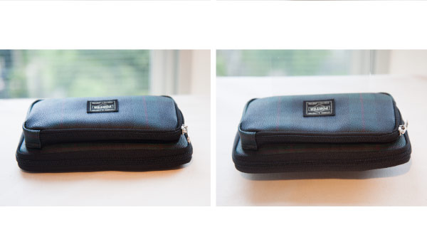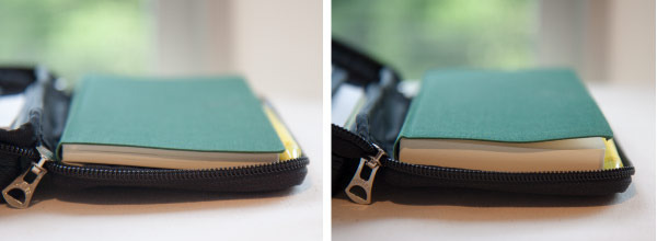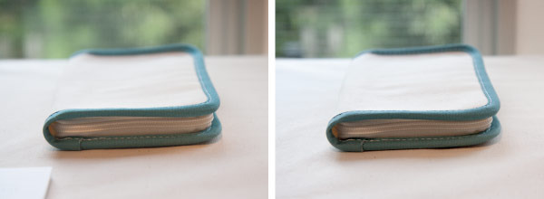 左:weeks MEGAにクリアカバーを装着(問題なく入るもの)