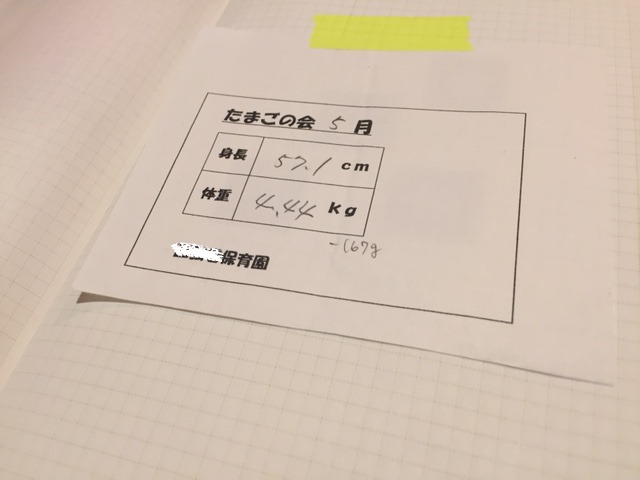 地域交流会で測ってもらった身長体重の記録。