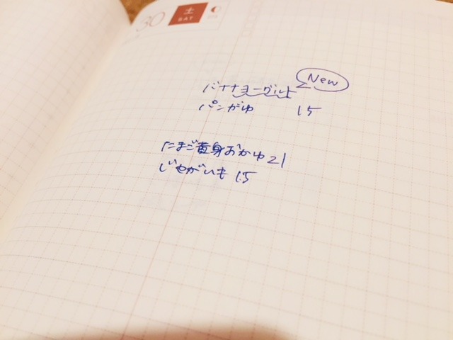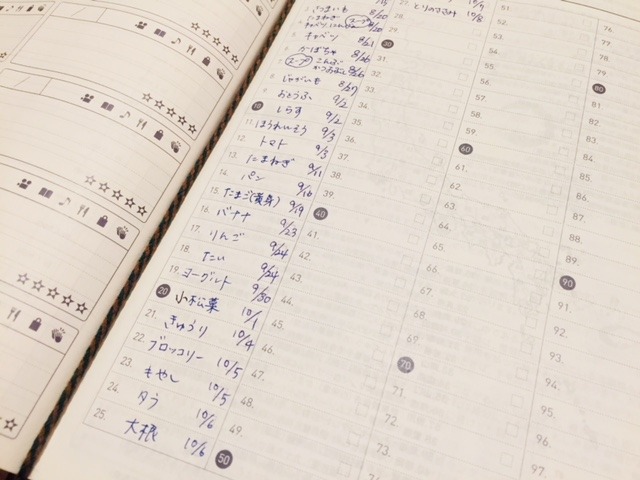 その日食べた離乳食をメモしたりもしています。