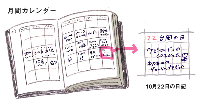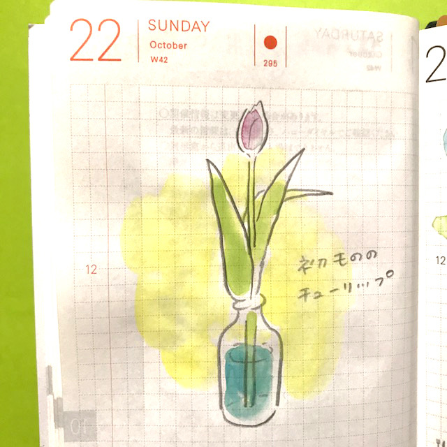 10月22日の日記。チューリップの色がとてもかわいらしくて、1日ページに絵を描きました。