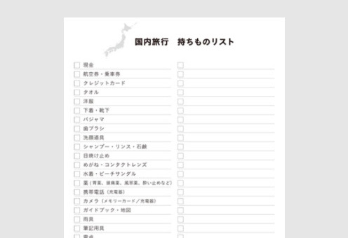 「国内旅行の持ちものリスト」(海外旅行用もあります)