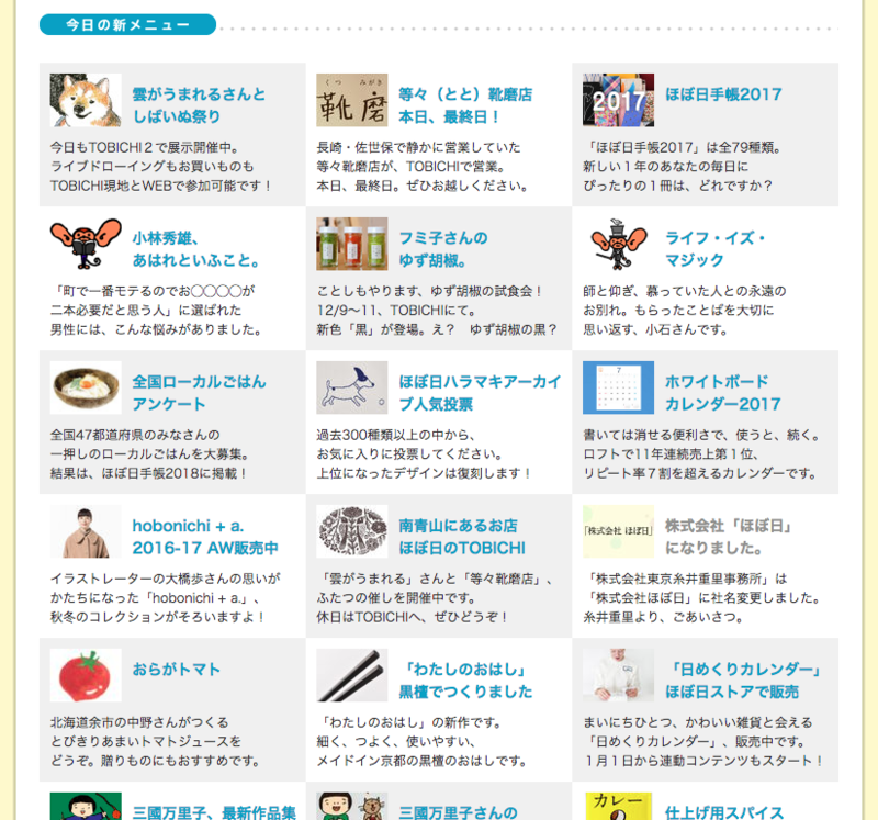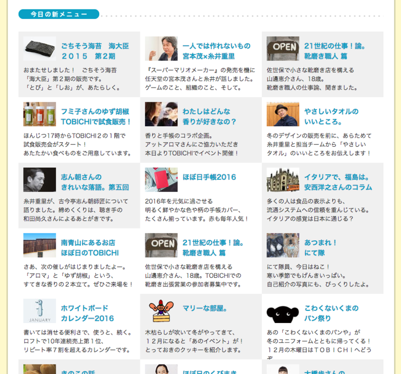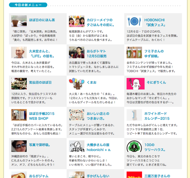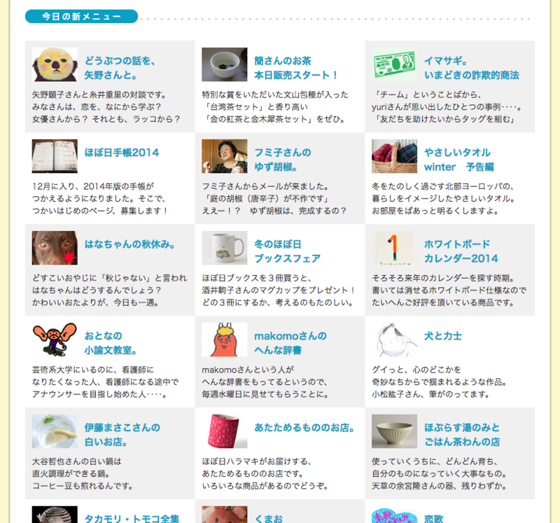 あ、ほぼ日のメニューはどんな感じだっただろうか。