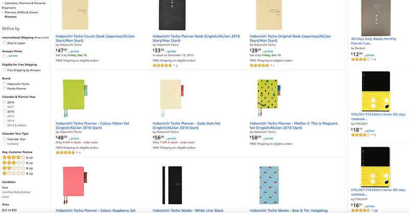 販売しているのは、Planner、オリジナル、カズン、weeksの