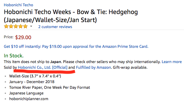 「Sold by Hobonichi Co., Ltd. [Official]」と