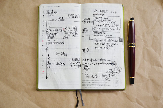 会社に着いたら、まず手帳を開いて予定を確認し、