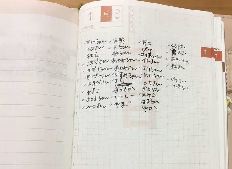 「年賀状を出す相手を書き出してました〜」