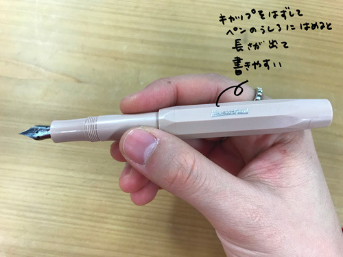 キャップを外してペンの後ろに着けると、13cmになります。長さが出て、書きやすくなります。![]()