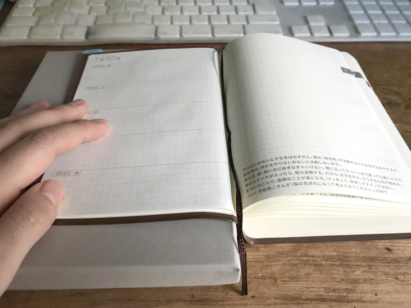 わたしは適当な高さの箱を左ページの下に差し込んで、
