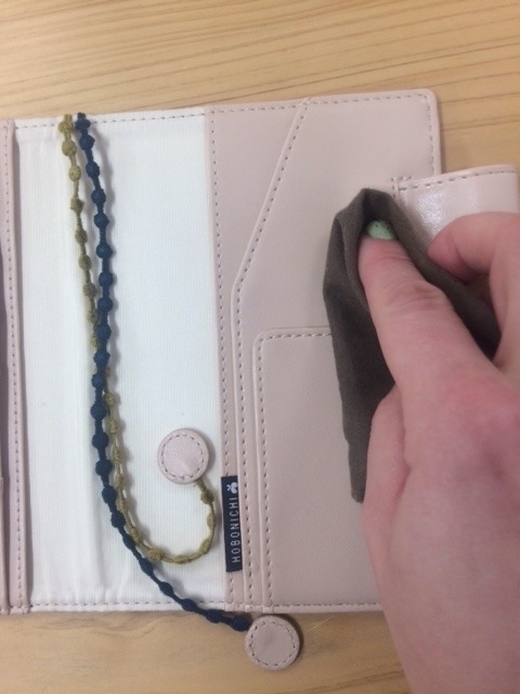 早速乗組員の愛用している手帳カバーを、クリーニングさせてもらいました〜!