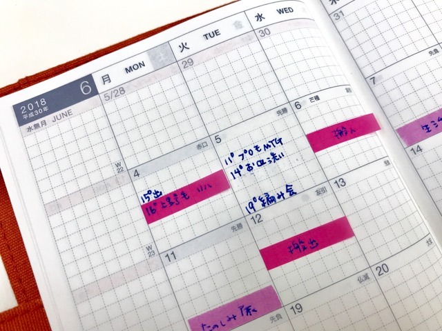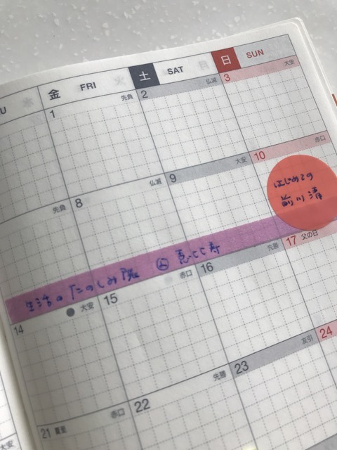 「外出」をする予定をフィルムふせんに書くようになりました。▲この日は、ここの時間は、外出だぞ、と一目瞭然です。