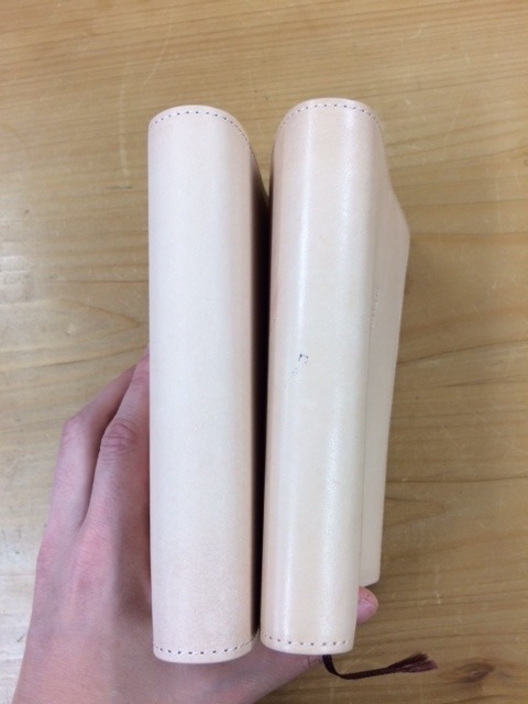 使いはじめて4ヶ月程度、ヌメ革カバーもほんの少しずつですが、ツヤも出て、なんとなく柔らかくなってきました!