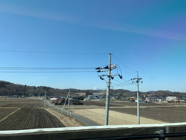 新幹線の窓の向こうに過ぎる景色を