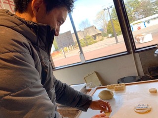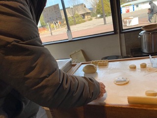 せんべい生地をのばす、