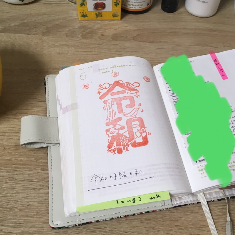 ▲ほぼ日手帳に押した「令和」スタンプ。新しい元号がはじまりました。