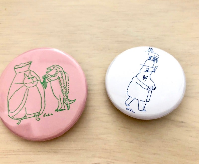 いのくまさんの猫缶バッジと、
