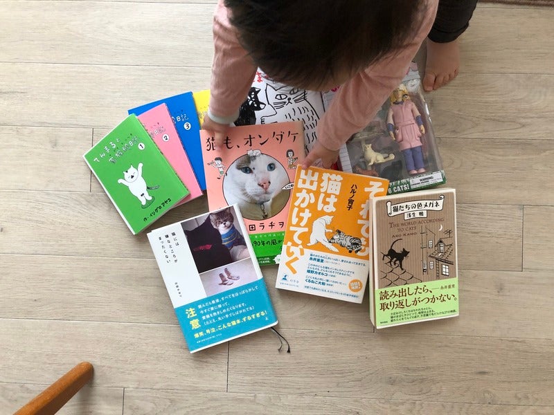 家にねこのものがたくさんあります。