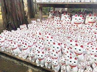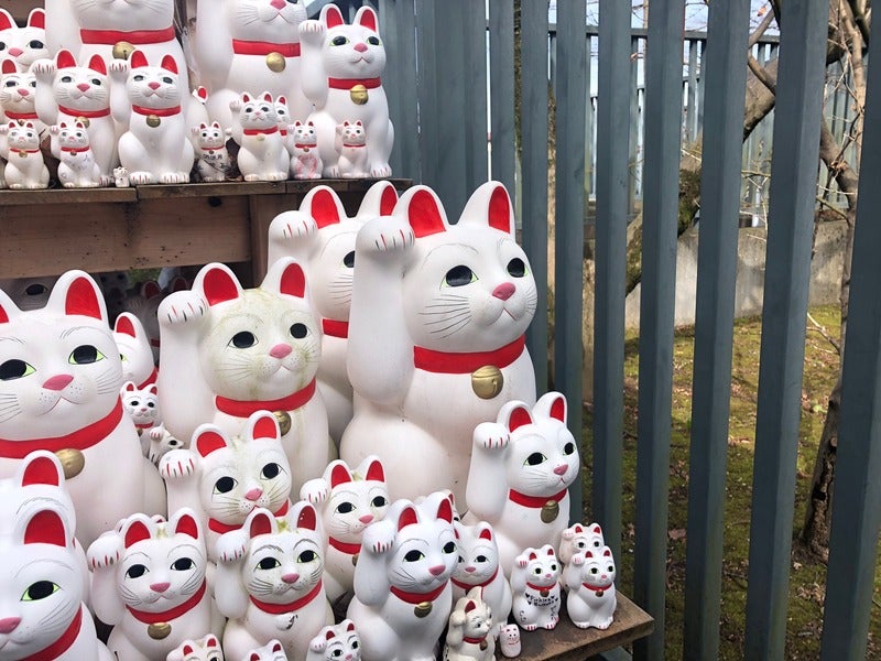 大小さまざまな招き猫がずらり。