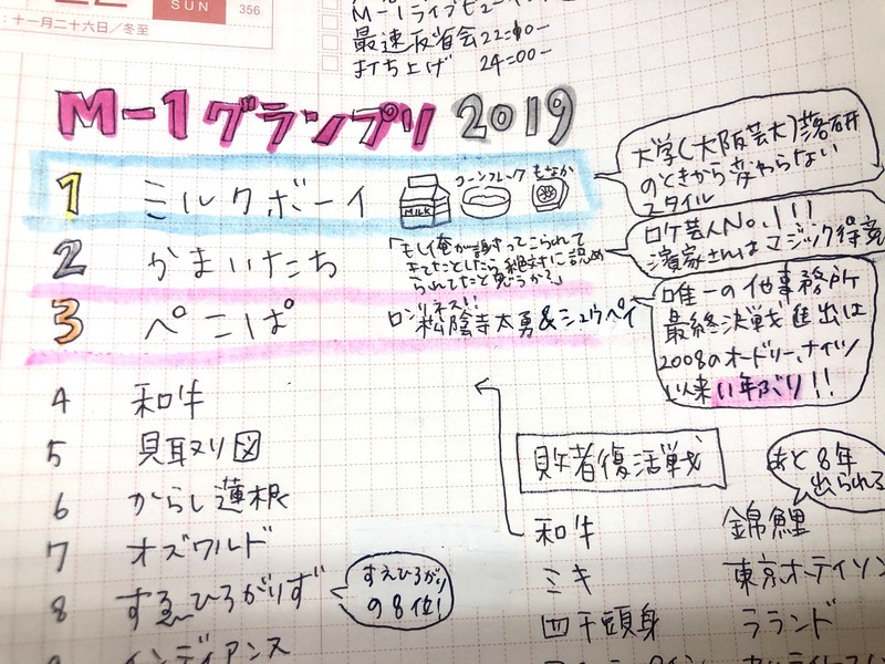 1週間前、M-1グランプリのことを書いた日にも