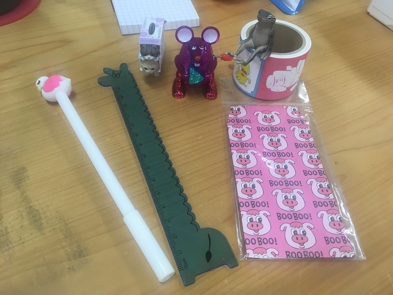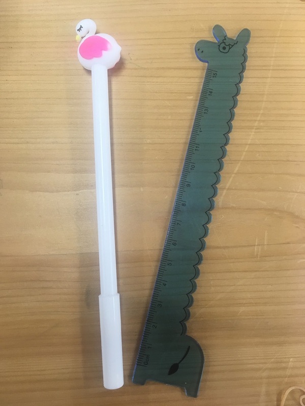 スワンがついたボールペンと、ロバ(?)の定規です。