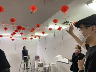 ガチャマシンを運んだり、展示ケースの位置を決めたり、パネルの順番を確認したり‥‥迷子になっていた時間を取り戻すように、バリバリ進めていきます。