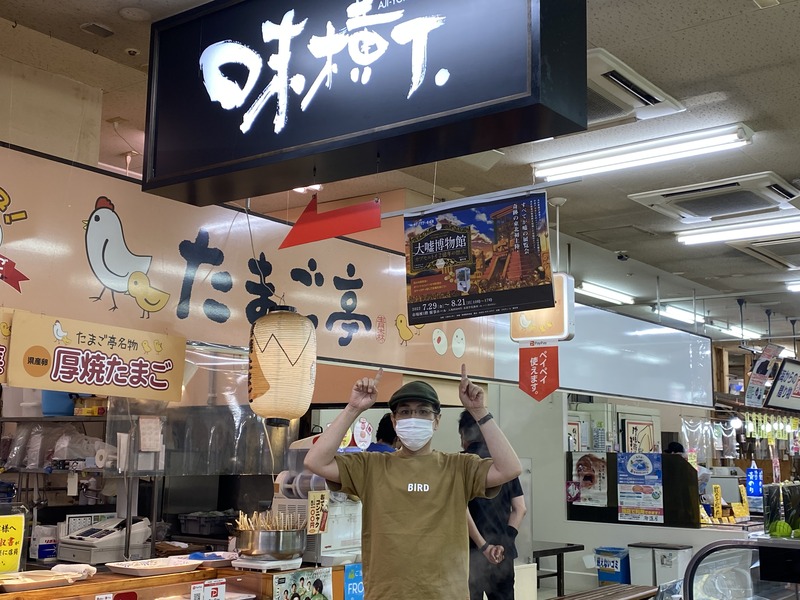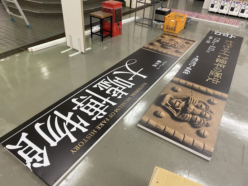 会場へ向かいます。八食センターのあちこちに大嘘博物館のポスターがひらひらと!