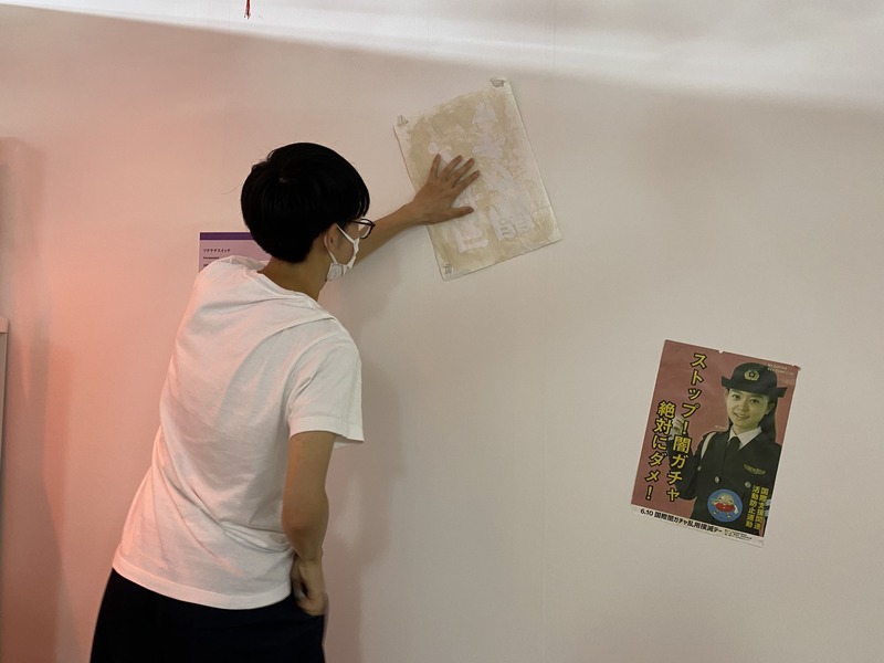 お昼過ぎまでお手伝いしてくれるとのことで、さっそく闇コーナーのポスター貼りをお願いしました。