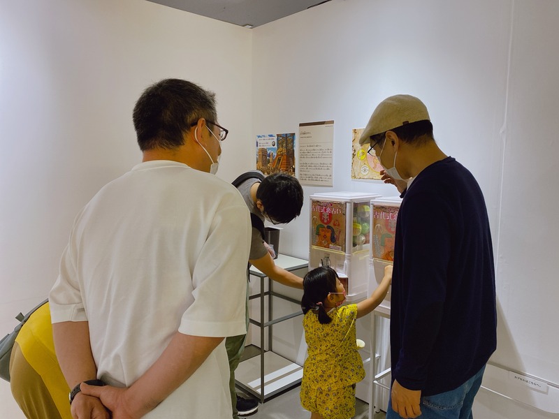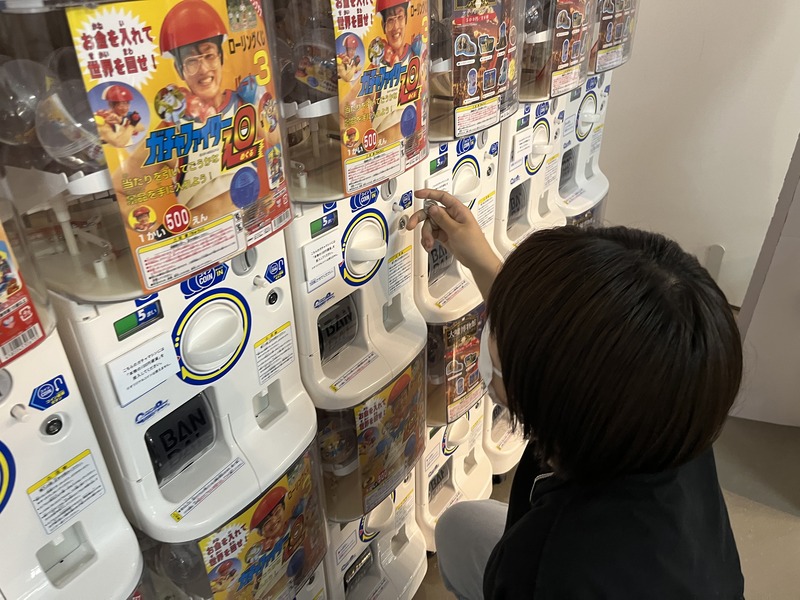 「ラジオを聴いて知ったのよ。博物館っていうから、蝶々とかそういうものが見られるのかなと思ったら、不思議なものがいっぱいで(笑)とりあえず、ガチャガチャをぜんぶ引いて、家に帰ったら孫に見せようと思うんですー。」