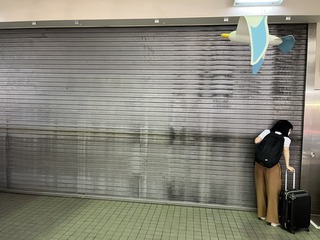銀色のシャッターが。