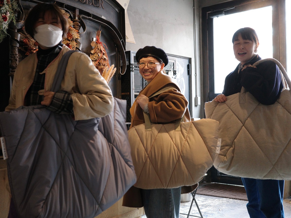 先日発売した「ほぼ日サイズ」のバッグを持った