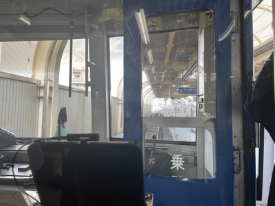 時々、車掌さんと目があいます。